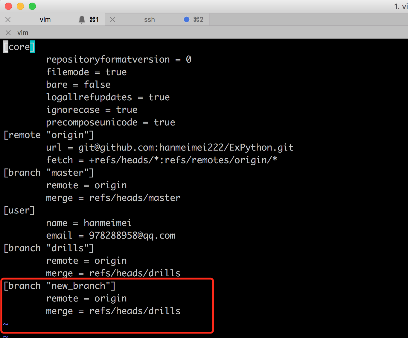 【删除】:在 .git/config 文件中删除相应的 [branch "xxx"] 记录即可删除关联的远程库分支